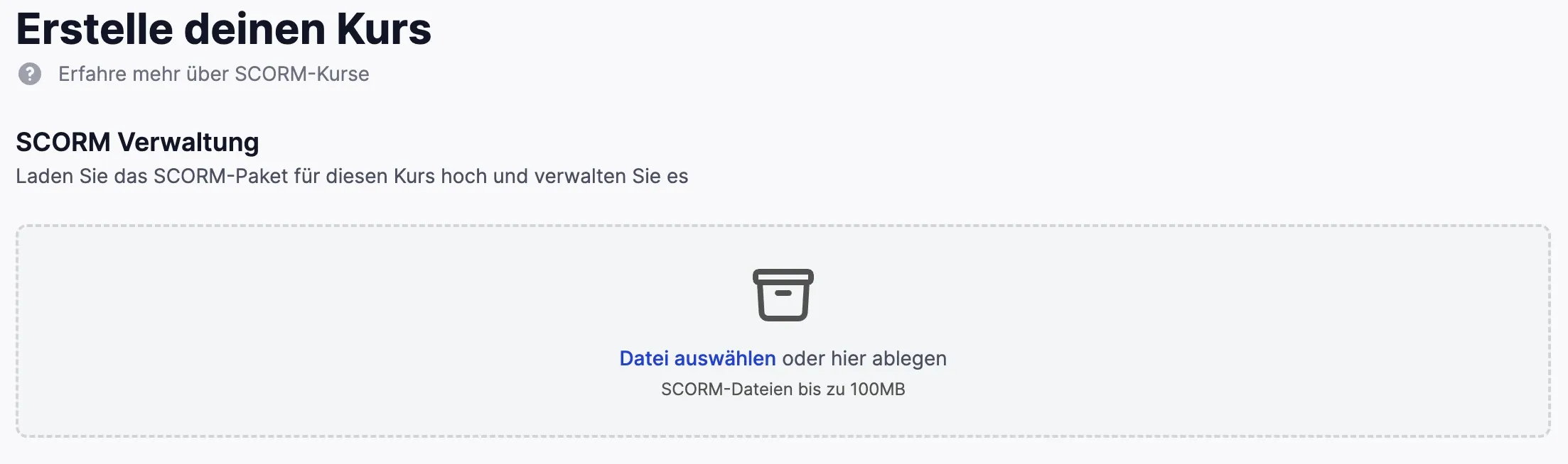 Admins laden ein SCORM-Paket einfach als ZIP-Datei im Kursmanager hoch.
