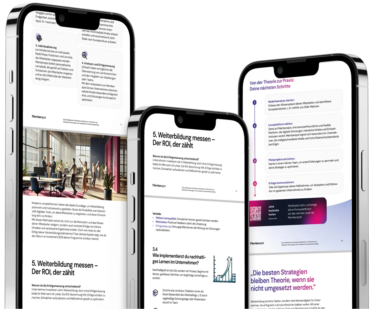 Die meisten Unternehmen verschenken das Potenzial ihrer Weiterbildung. Erfahre in unserem E-Book, wie innovative Teams Schulungen zum echten Business-Driver machen. Die Fakten sprechen für sich: