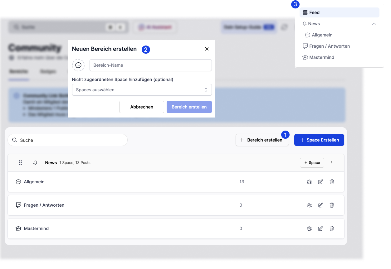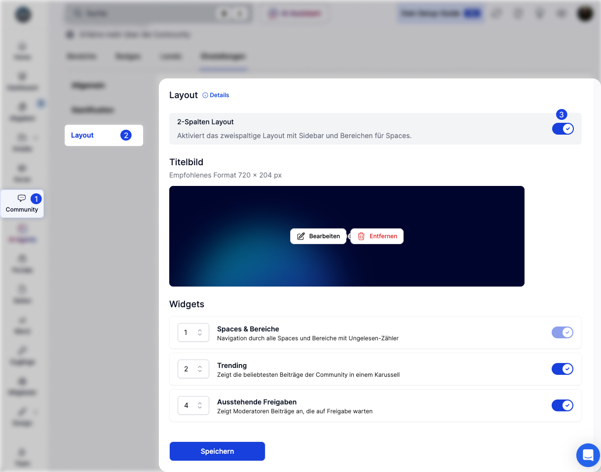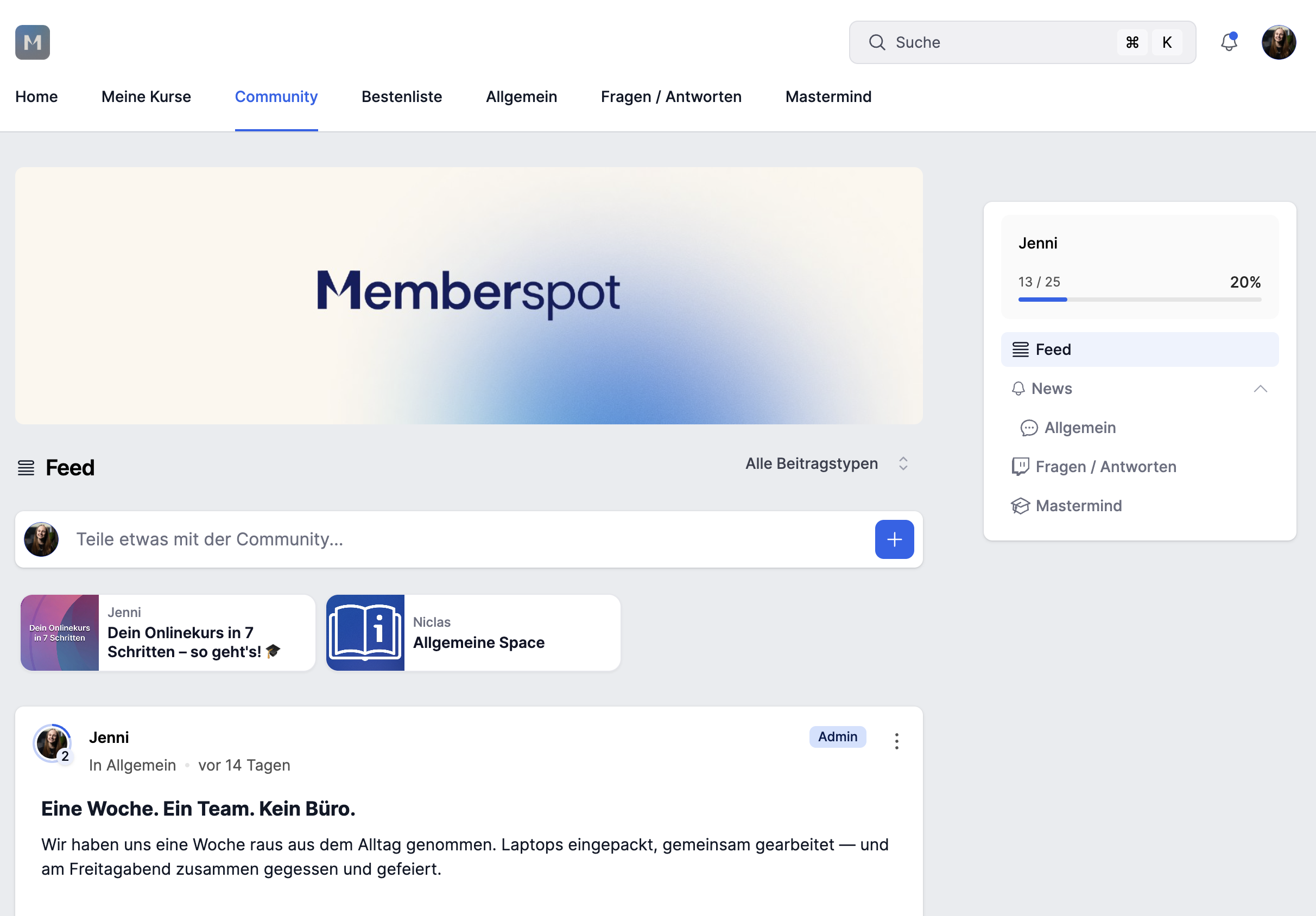 Knowledge-based companies with internal teams: You use the community for internal learning and collaboration. Few spaces, clear structure. A single-column layout is sufficient here—no overhead, no distractions; the feed takes center stage.