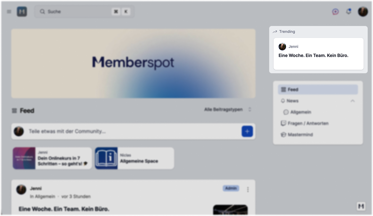 Themore Spaces there are, the more gets lost in the shuffle. A post might do well in one Space—but members of other Spaces never see it. Trending shows what’s relevant across the entire platform. Each member only sees what they have access to—private Spaces remain private.